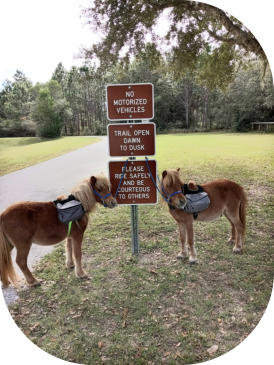 I enjoy doing different things with my mini horses and one of themis hiking, which, they also enjoy! Mini horses are very versatile and do love having a job to do. When we hike, Rio and Rye carry theirown backpacks, supplied with water, bug spray, etc..They enjoy meeting and greeting other hikers, most of whom have never seen mini horses on the trails!