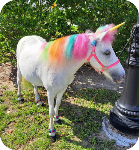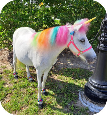 When you book us for your special event, we will arrive on time, the minis will have been bathed and groomed that morning. They will have halters and lead ropes matching the attire, I can supply my own silk flowers, or you can have something made to put around their necks or in their manes.I will also be dressed accordingly.